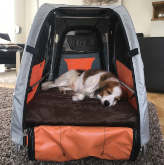 Die Prinzessin auf der Erbse testet schon einmal in sicherer Umgebung ihren neuen Fahrrad-Anhänger und die Weichheit des zugehörigen Kissens.
